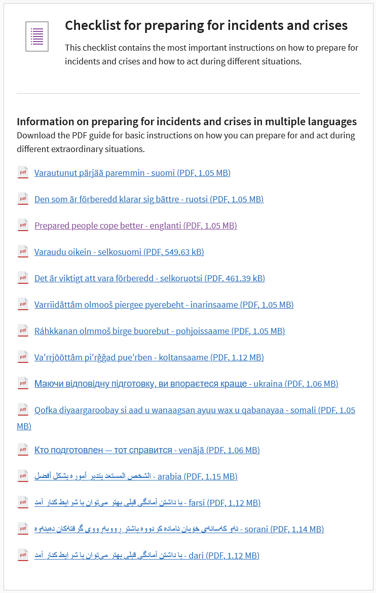 Finnland ist dafür bekannt, seine Bevölkerung umfassend auf Krisen vorzubereiten. Informationen dazu gibt es auch in verschiedenen Sprachen.