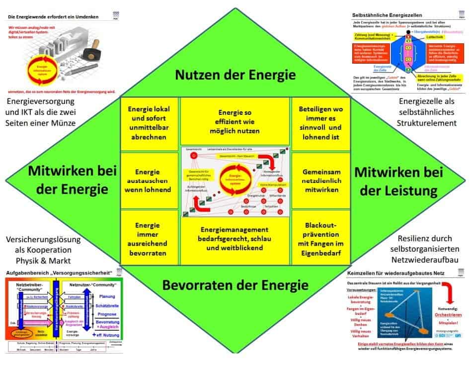 Die beiden kritischen Infrastrukturen (Energieversorgung/ Informations- und Kommunikationstechnik) bilden künftig ein gemeinsames System. Getrennte Betrachtungen sind weder möglich noch sinnvoll. Die Techniken sind in einander verwoben und in ihrer Funktionsweise von der jeweils anderen abhängig. Sie sind wie die beiden Seiten einer Münze. Das Energieinformationssystem beschreibt beide Sichten, den analog/realen und den digital/virtuellen Anteil. Das kann als neuronales Netz der Energieversorgung aufgefasst werden mit deutlichen Ähnlichkeiten zum menschlichen Gehirn.