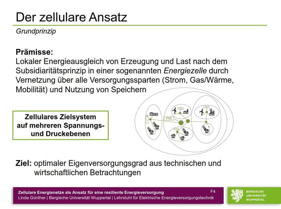 Es freut uns natürlich besonders, wenn auch von wissenschaftlicher Seite unser Energiezellenansatz bestätigt wird! Vor allem auch die Erkenntnis: Außerdem müssten Rahmenbedingungen der Energiewirtschaft wie Gesetze und Normen angepasst werden. Gerade hier beobachten wir sehr häufig, wie viele Akteure in ihrem bestehenden Denkrahmen gefangen sind. Ein System kann man jedoch nur verändern/anpassen, wenn man das Gesamtsystem betrachtet und nicht an Einzelelementen herumdoktert, was derzeit leider häufig der Fall ist. Zuerst die Einspeisförderung, jetzt die Speicherförderung, dort der Übertragungsnetzausbau, usw. Zudem fehlt eine plausible Gesamtzielsetzung auf europäischer Ebene, die auch wirklich gemeinsam verfolgt wird. Damit ist wieder eine dezentrale bottom-up Lösung – das Energiezellensystem – unumgänglich. Dieses kann einfach in das bestehende System implementiert und von untern her die Robustheit des Gesamtsystems erhöhen. Wesentliche Hinderungsgründe: Bestehende Regulative für das Großtechnische System und kurzsichtige, rein betriebswirtschaftliche Betrachtungen.