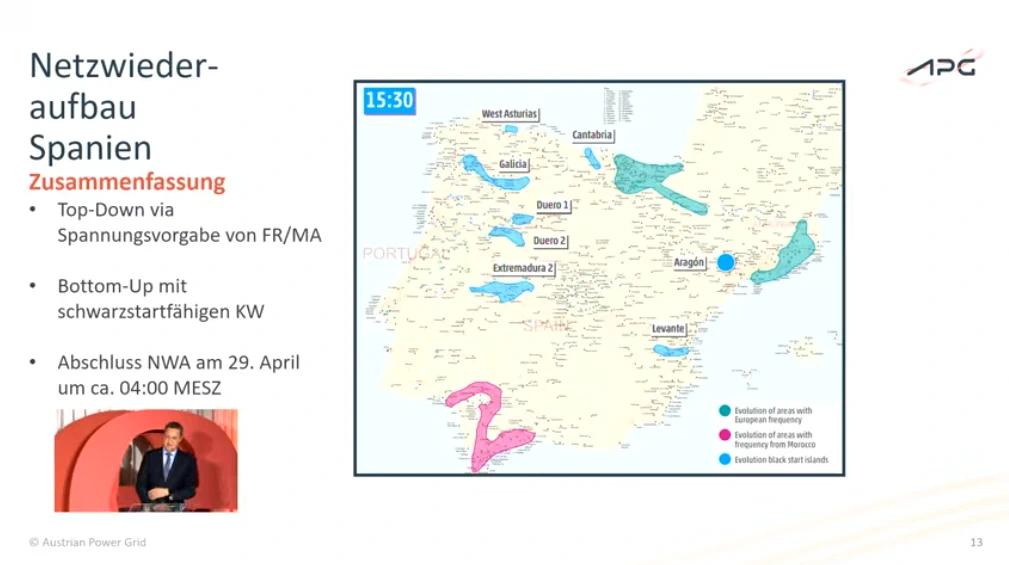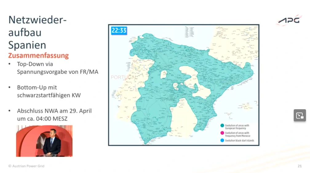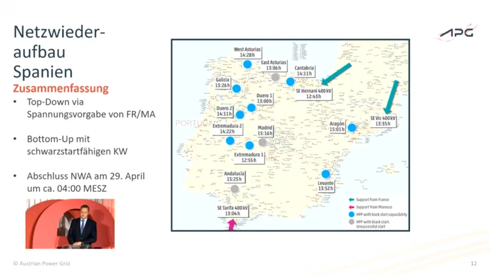 - Um etwa 04:00 Uhr MEZ war die Wiederherstellung des Übertragungsnetzes in Spanien abgeschlossen.