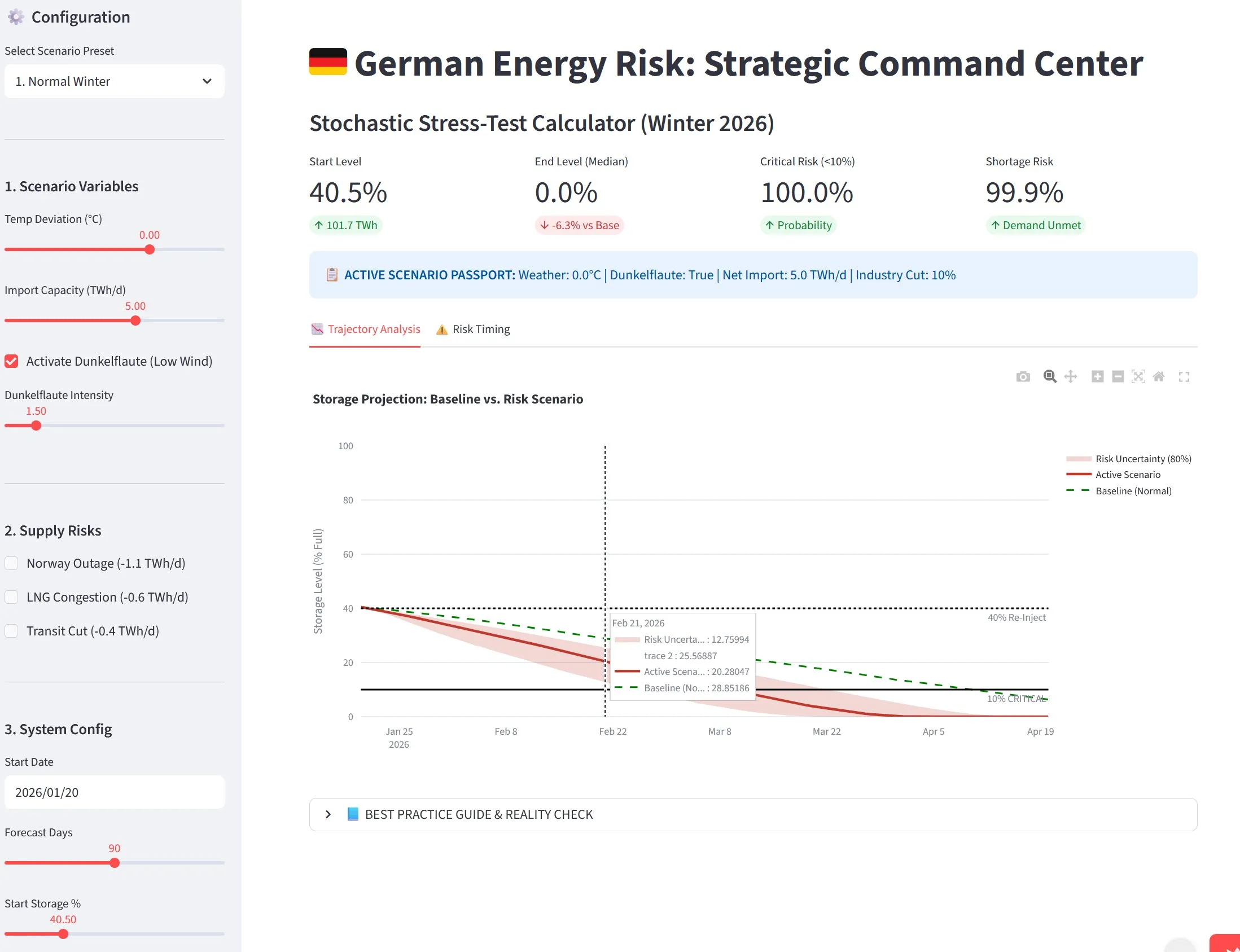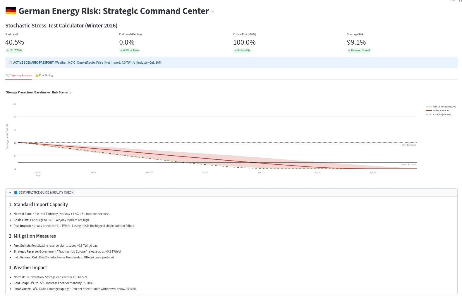 Ein Blick auf das Simulationstool von Marco Felsberger verdeutlicht die Dramatik. Bereits wenige Stellschrauben lassen das System spürbar schwanken. Die Wirklichkeit vereint deutlich mehr Einflüsse, was die Vorhersage erschwert. Diese Untersuchungen liefern keine punktgenaue Prognose, sondern schärfen den Blick für die Lage. Sie verdeutlicht, wie eng die Energieversorgung inzwischen am Limit operiert.