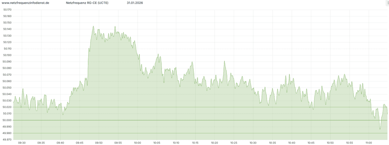 Anmerkung: In der Ukraine kommt es kriegs- und zerstörungsbedingt ständig zu Stromausfällen und rollierenden Stromabschaltungen („Brownouts”). Wirkliche Blackouts, also überregionale Systemausfälle, sind aber die Ausnahme. Dieses Ereignis hat sich auch im restlichen Verbundsystem durch einen erheblichen Frequenzanstieg deutlich bemerkbar gemacht.