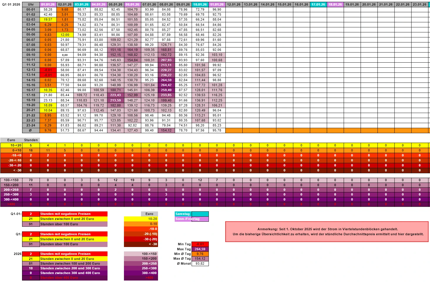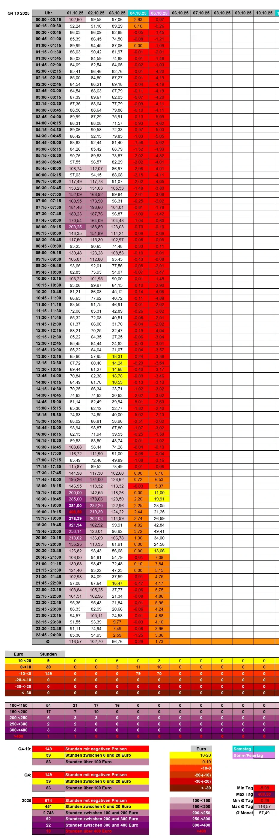 Mit 1. Oktober erfolgte eine Umstellung von Stunden auf Viertelstundenpreise.