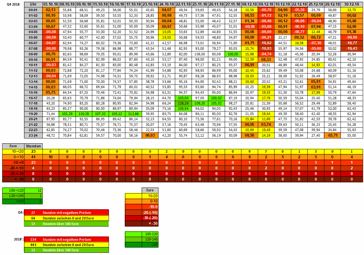Strompreise unter 20 bzw. über 100 Euro im 1. Quartal 2019