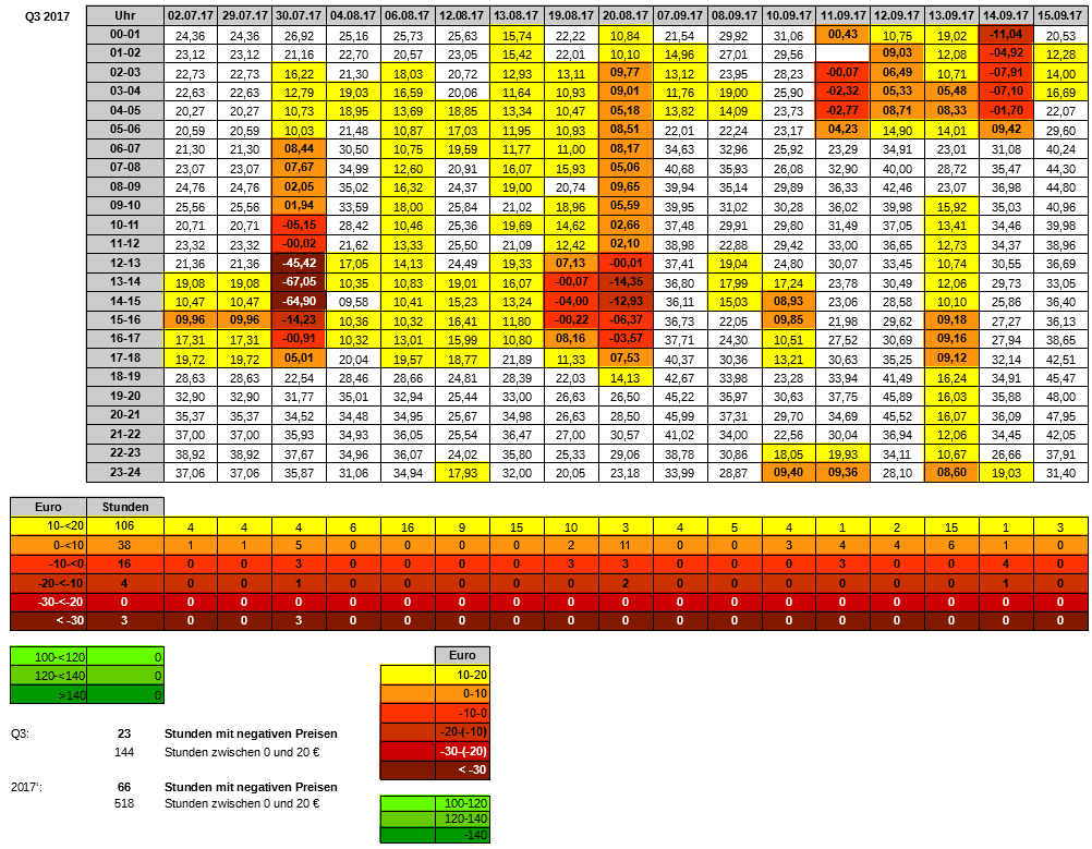 Strompreise unter 20 bzw. über 100 Euro im 3. Quartal | September 2021